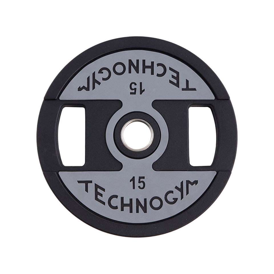 แผ่นเหล็กหล่อเคลือบ PU พร้อมที่จับมือแบบมีรูขนาด 50 มม. สำหรับอุปกรณ์ออกกำลังกายเพื่อเสริมสร้างความแข็งแรงที่บ้าน