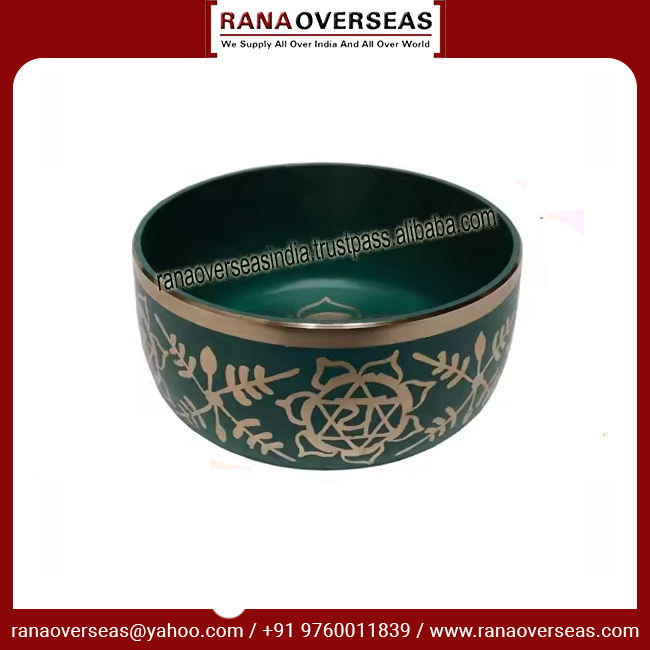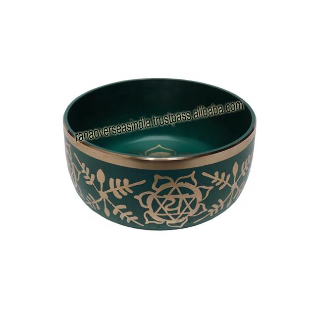 ชามร้องเพลงทิเบตโลหะทาสีมือสำหรับการรักษาจักระ