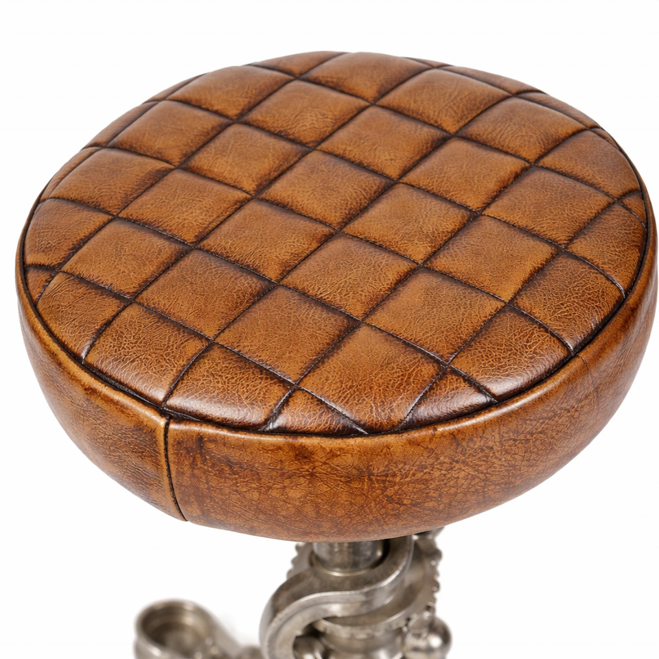 เก้าอี้บาร์เหล็กหล่อทำมือ ดีไซน์ทันสมัย ฐานสี่ขา ปรับความสูงได้ เบาะหนังแท้ สีสั่งทำได้ รับประกัน 3 ปี