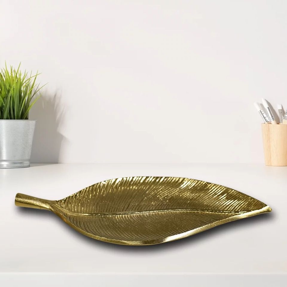 ถาดใบไม้โลหะขนาดใหญ่ ถาดเสิร์ฟ จานตกแต่ง สำหรับใส่ผลไม้ ขนม คุกกี้ ของว่าง ถาดใบไม้หรูหรา สำหรับตกแต่งงานแต่งงาน งานเลี้ยง