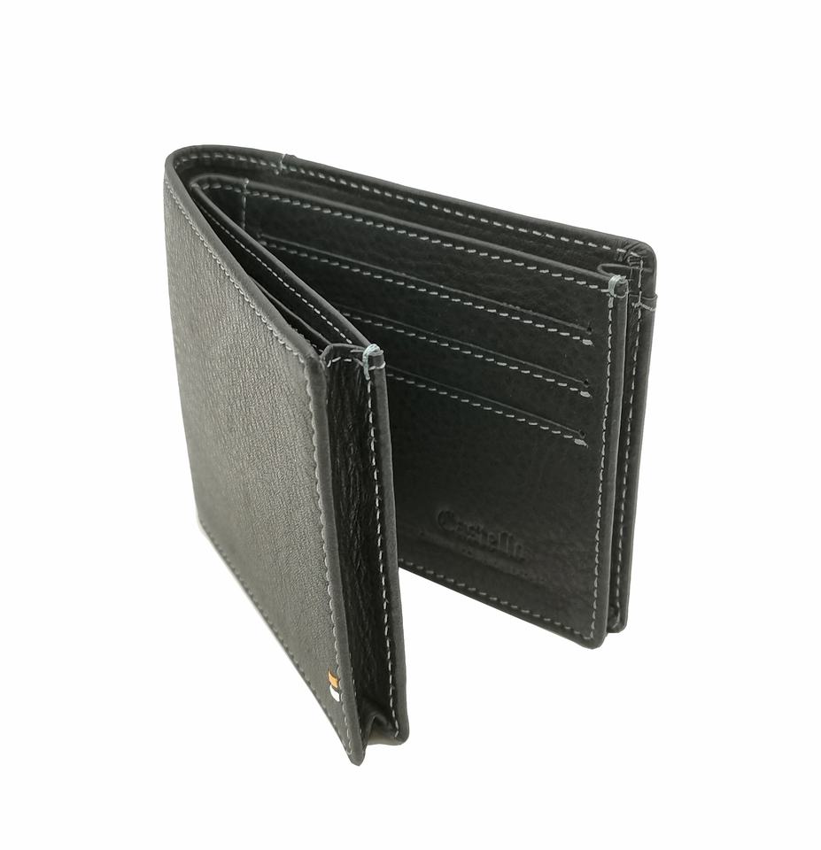 Castello 2024กระเป๋าสตางค์ผู้ชายแบบพับสองทบแบบพับได้, กระเป๋าสตางค์หนังวัวแท้แบบเปิดช่องใส่ธนบัตรใบสั้นผ้าโพลีเอสเตอร์มาใหม่