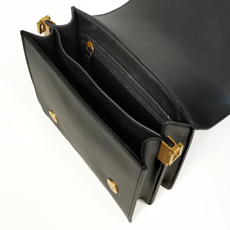 Castello กระเป๋าถือสะพายข้างหนัง PU สีดำสำหรับผู้หญิง, กระเป๋าถือสายรัดสองชั้นแบบเกาหลีปรับได้