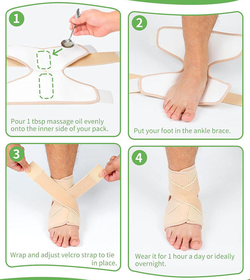 น้ำมันละหุ่งน้ำมันละหุ่งห่อข้อเท้าเท้าบรรเทาอาการปวดเท้าปรับได้รองรับข้อเท้าน้ำมันละหุ่งห่อเท้า