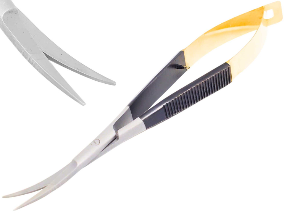 Castroviejo กรรไกรขนาดเล็กโค้งสีดำทองสแตนเลสคู่มือที่มีอยู่ในทุกชนิดและขนาดเครื่องมือผ่าตัดจุลภาค