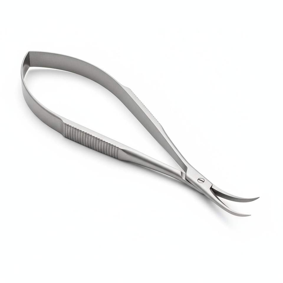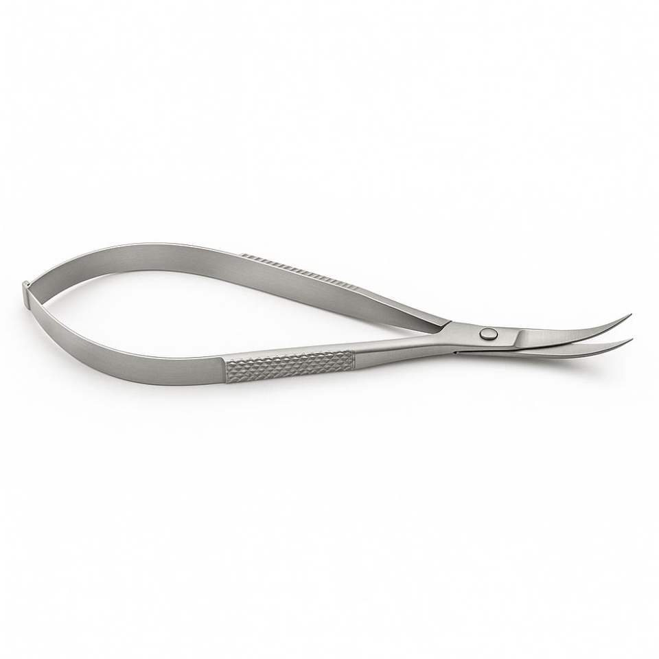 Castroviejo กรรไกรผ่าตัดตาสแตนเลสโค้งปลายไมโครปลายแหลมมีสปริงเครื่องมือผ่าตัดตาขนาดเล็ก