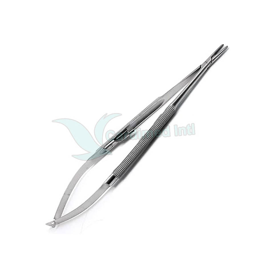 ที่จับเข็มตรงสำหรับการผ่าตัดขนาดเล็ก Castroviejo TC 7 นิ้ว ทำจากสแตนเลสและไทเทเนียม แบบใช้มือ