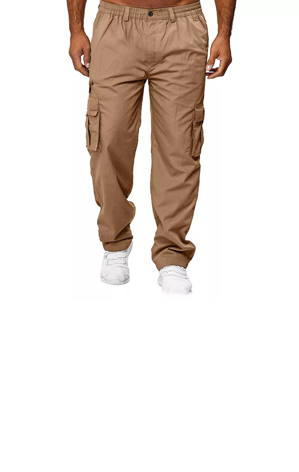 กางเกงคาร์โก้ตรงเอวผ้าอ๊อกซ์ฟอร์ดย้อมธรรมดาเอวยางยืดแบบลำลองสำหรับ100%