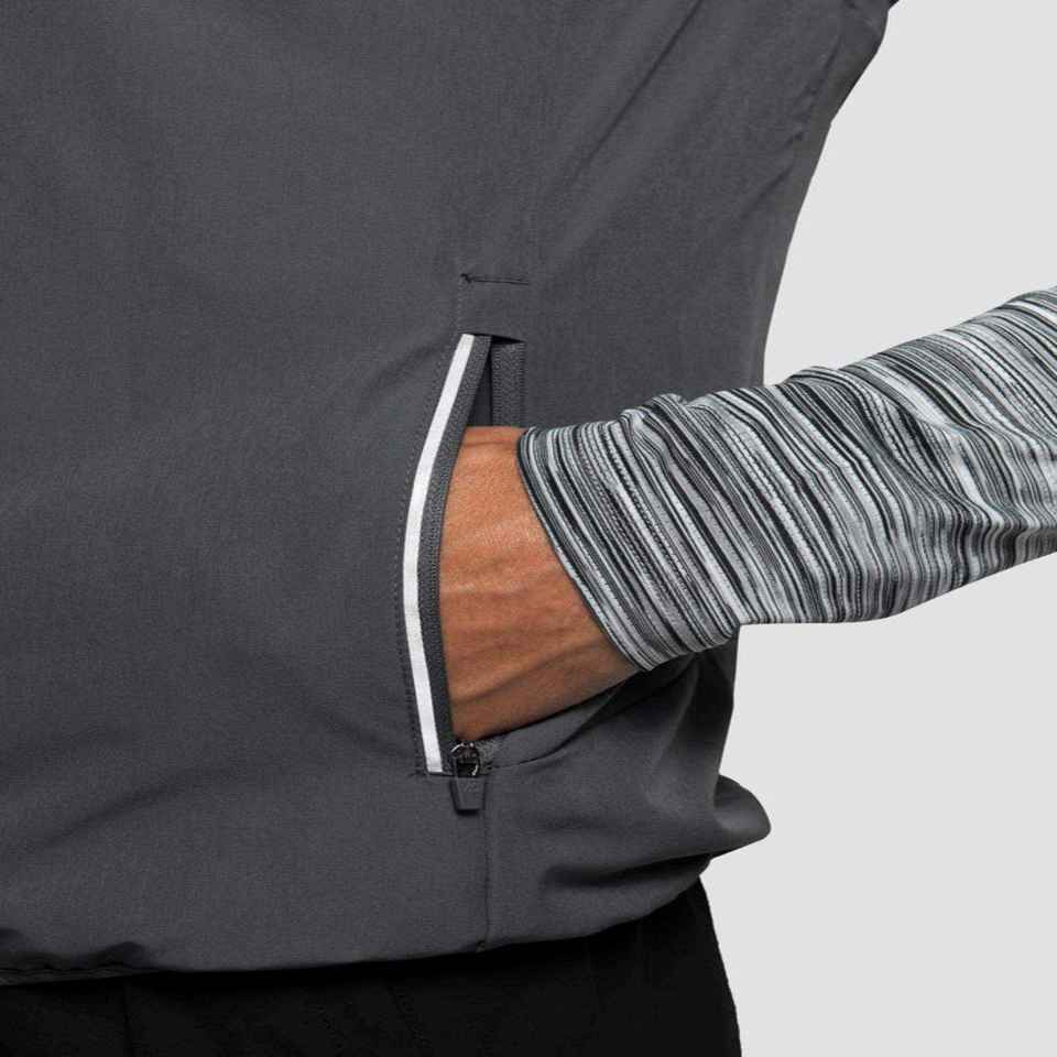 เสื้อกั๊กผู้ชายสไตล์ลำลองสำหรับฤดูใบไม้ร่วง พร้อมแถบสะท้อนแสง ซิปยาว กระเป๋าซิปใช้งานง่าย ด้านหน้าลายปัก