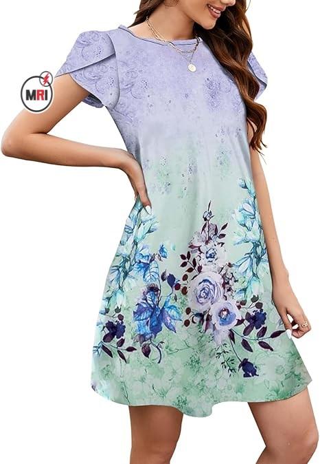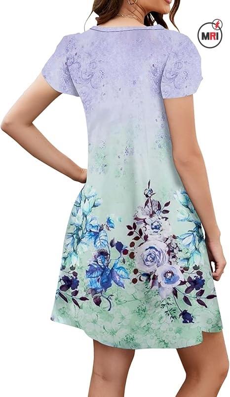 เดรสคอกลมทรงหลวมแขนสั้นสำหรับผู้หญิง, เดรสชายหาดทรงหลวมกระเป๋าแฟชั่นฤดูร้อน