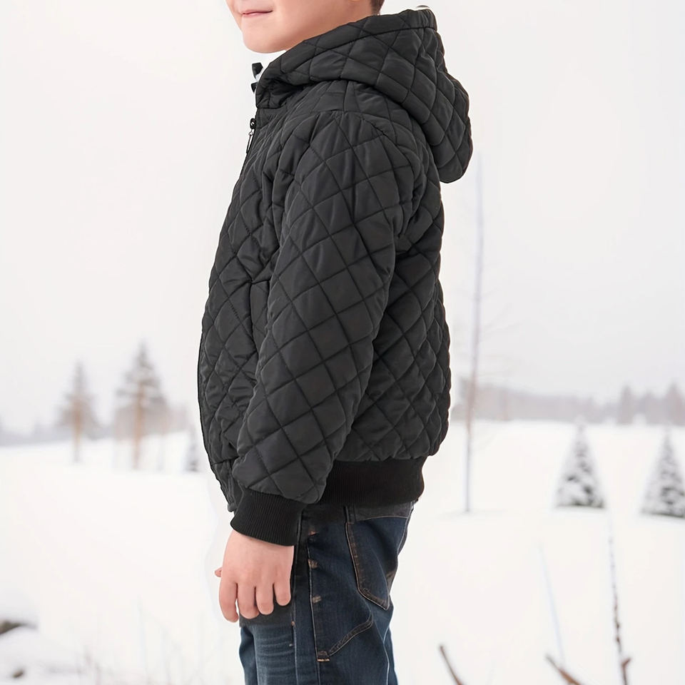 Casual Boys Hooded Puffer Jacket Zipper Closure Printed Design Windproof Breathable High Quality Custom Colors OEM Service