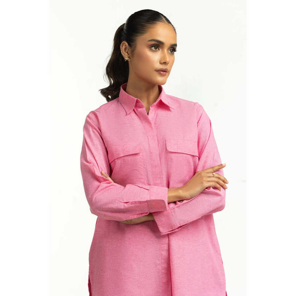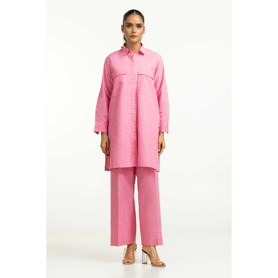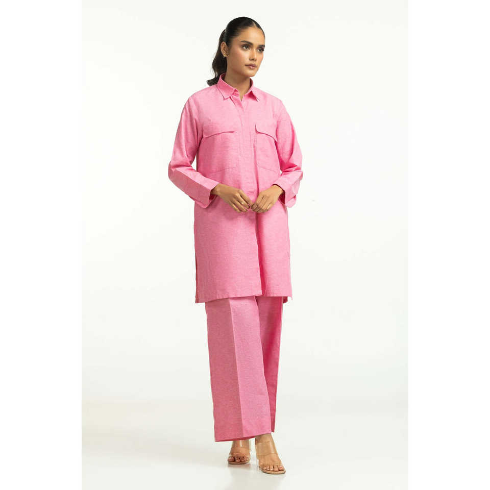 ชุดเซ็ตผ้าชามเบรย์ย้อมสีลำลอง รุ่น IPST-44559 สำหรับชุดฤดูใบไม้ผลิ/ฤดูร้อน ไซส์ XS/XS ชุดสองชิ้นประกอบด้วยเสื้อ