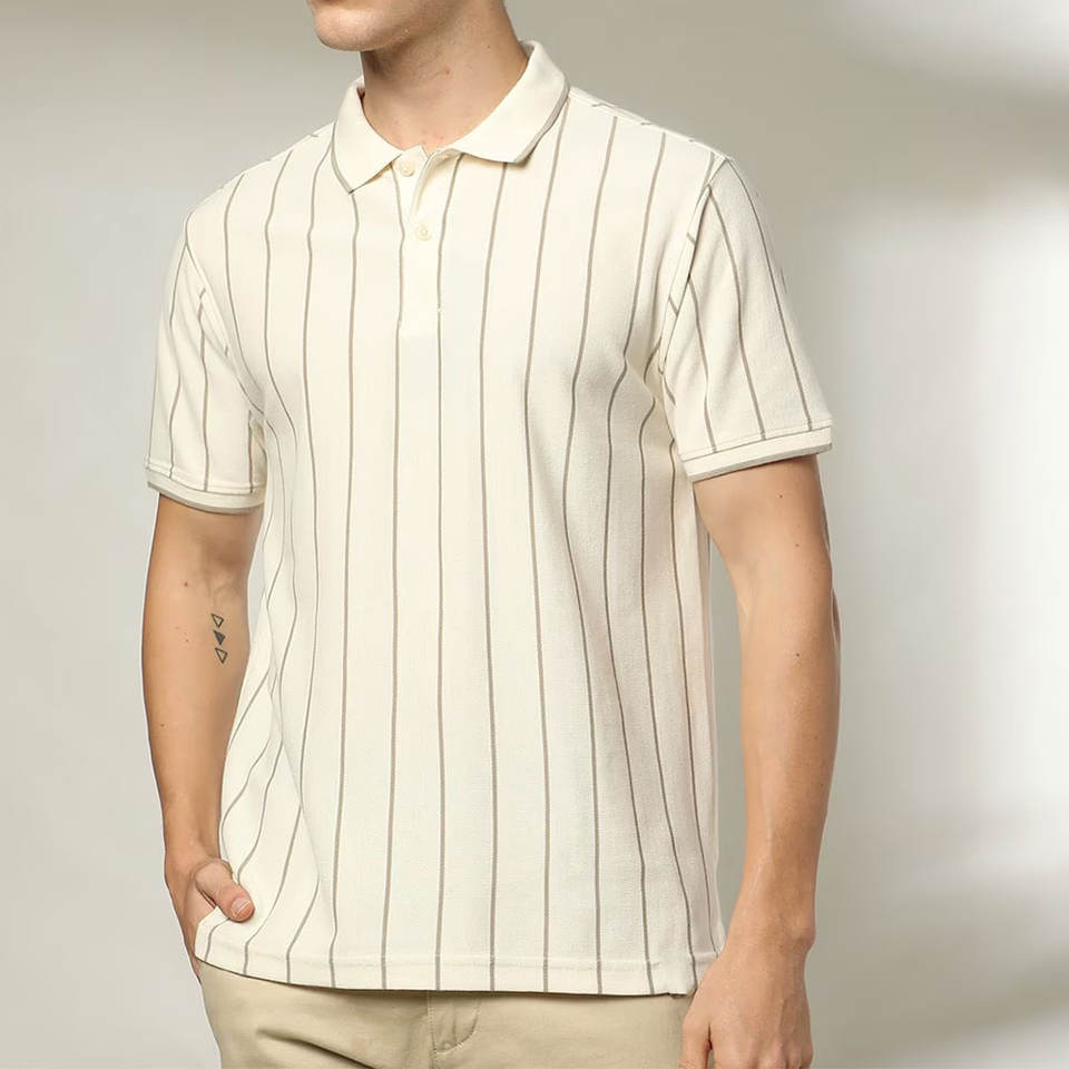 เสื้อโปโลผ้าฝ้ายระบายอากาศลายทางสำหรับผู้ชายเสื้อผ้าลำลองไซส์ใหญ่พิเศษ