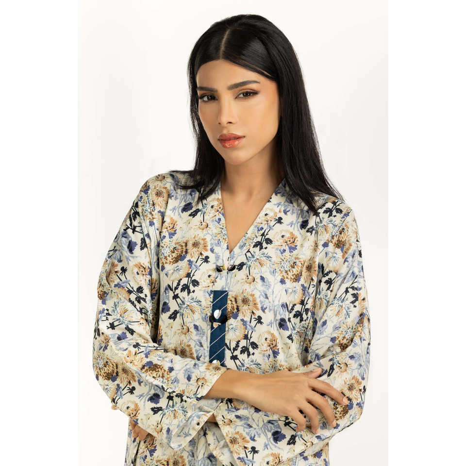 ชุดลำลองแบบ Co-Ord รุ่น IPST-55333 ผ้าวิสโคสเครปพิมพ์ลาย แขนสามส่วน สำหรับฤดูใบไม้ผลิ/ฤดูร้อน