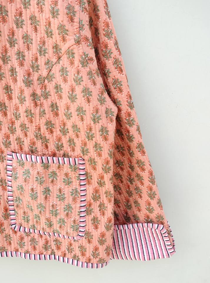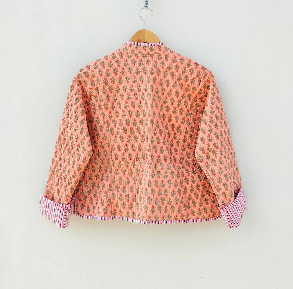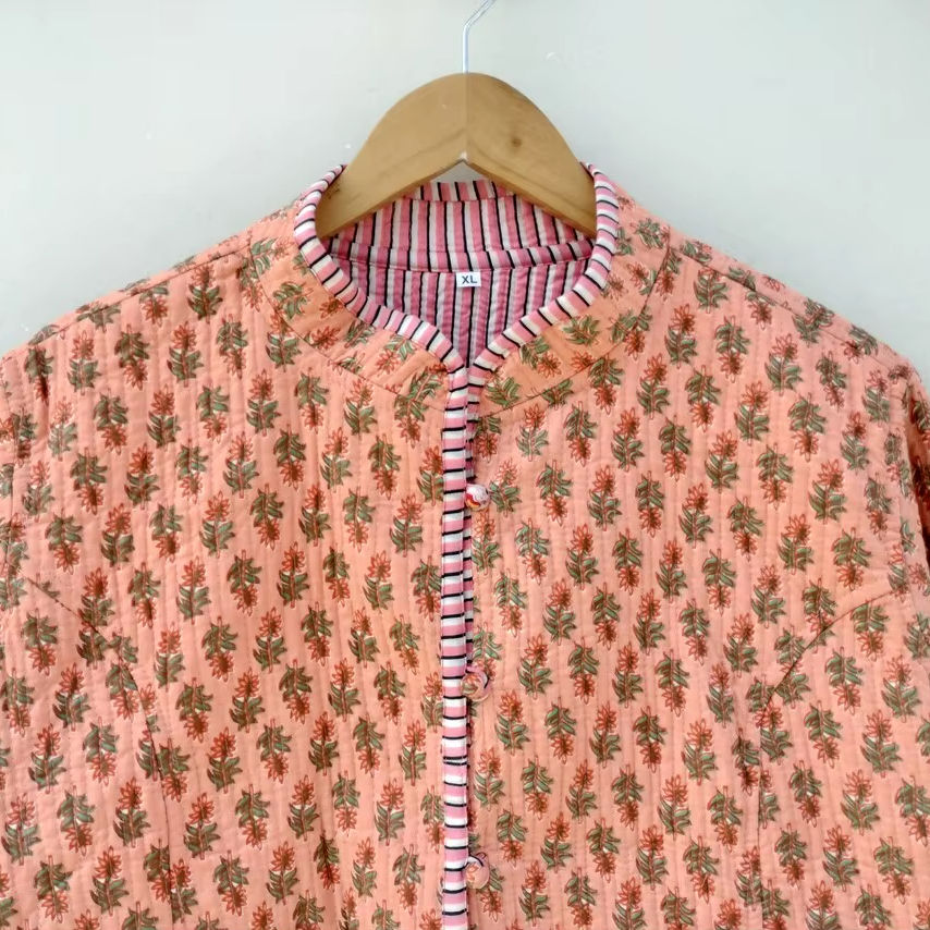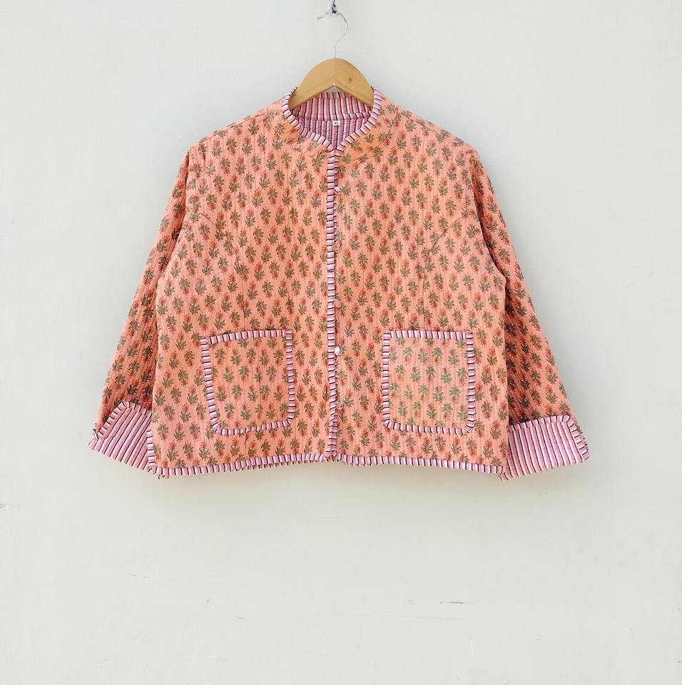แจ็กเก็ตผ้าฝ้ายลำลองแบบกลับด้านได้, แจ็กเก็ตสั้น Kantha แจ็กเก็ตผ้าทอพิมพ์ลายแบบซักได้สำหรับฤดูหนาว