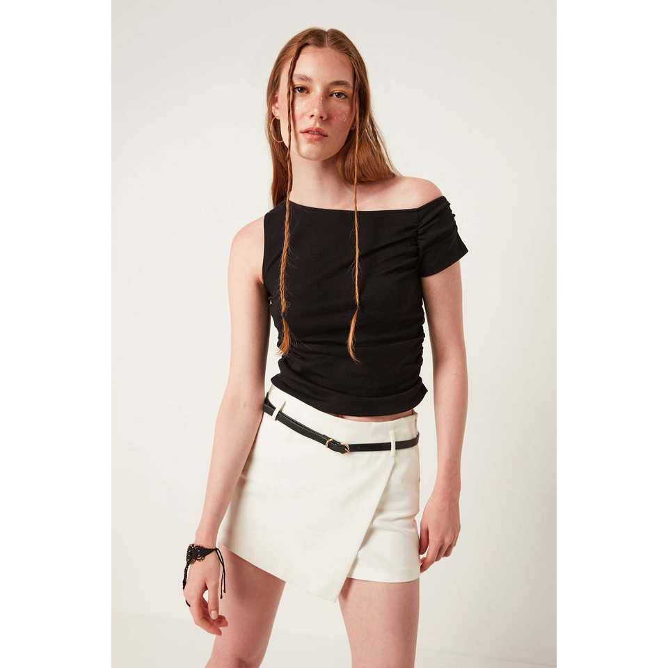 เสื้อเบลาส์คอกลมแขนยาว แขนสั้น แต่งโลโก้ด้านหน้า จับจีบ ทรงปกติ ผ้าฝ้าย 95%