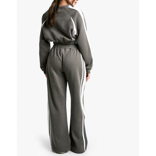 ชุดวอร์มสองชิ้นเสื้อครอปท็อปลำลองสำหรับผู้หญิงเสื้อสเวตเชิ้ตผ้าฟลีซและกางเกงผ้าคอตตอน