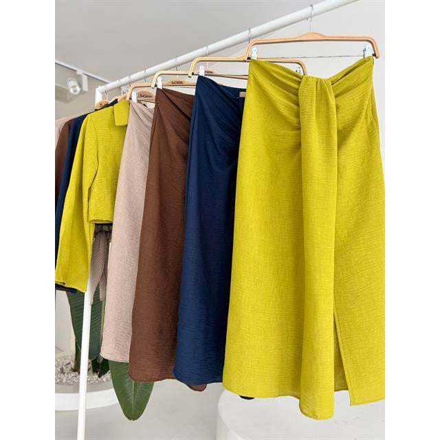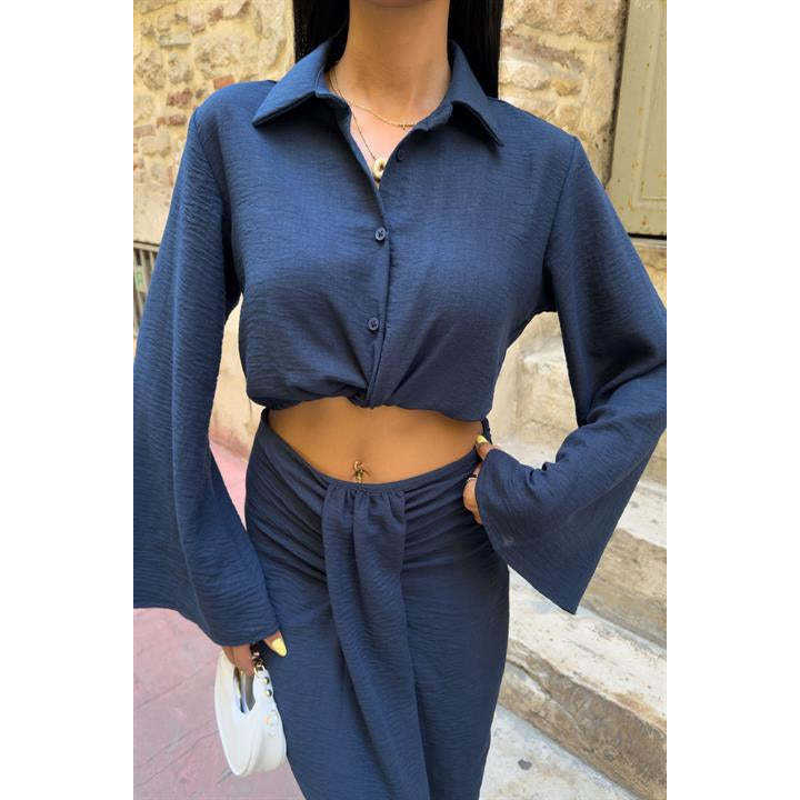 ชุดเสื้อครอปแบบลำลองและกระโปรงทรงจีบ รุ่น 10195 ผลิตจากผ้าเครป สำหรับฤดูใบไม้ผลิ/ฤดูร้อน