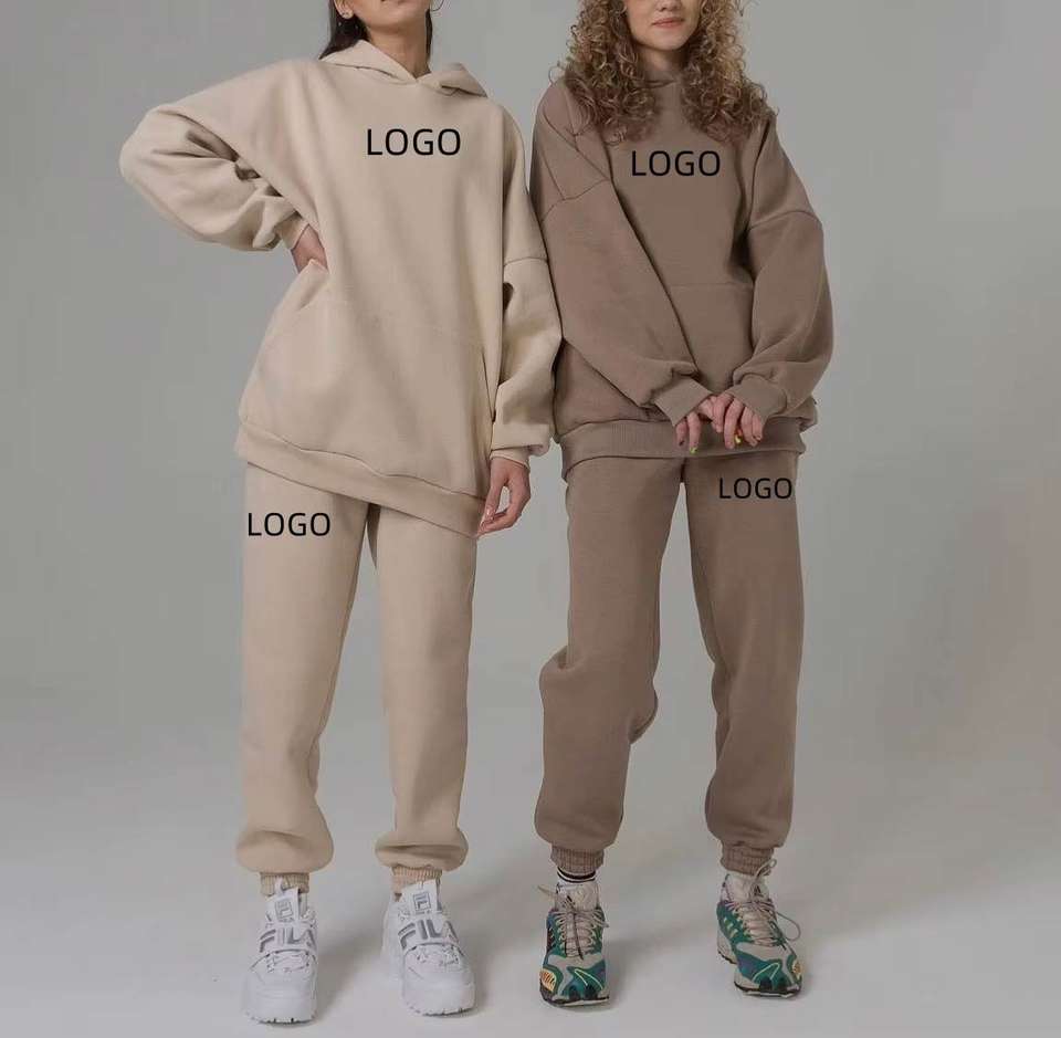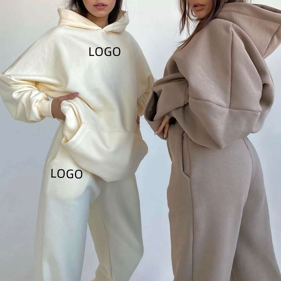 เสื้อกันหนาวมีฮู้ดสำหรับผู้หญิงชุดวอร์มสองชิ้นมีฮู้ดพิมพ์ลายโลโก้ขนาดพิเศษ