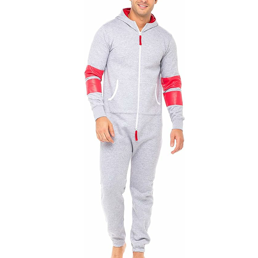 จั๊มสูทมีฮู้ดสำหรับผู้ชายชุดวันซี่มีฮู้ดวันซี่พิมพ์ลายแฟชั่นชุดนอนวันเดียวของผู้ชายลำลองใส่ได้ทุกวัน