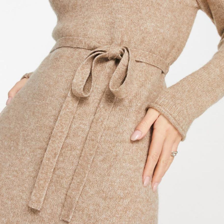 เดรสไหมพรมทรงเอเข้ารูป คอวี แขนกุด ดีไซน์ลำลอง สำหรับฤดูใบไม้ร่วง เหมาะสำหรับใส่ทำงาน มีเชือกผูกเอว ความยาวปานกลางสำหรับผู้หญิง
