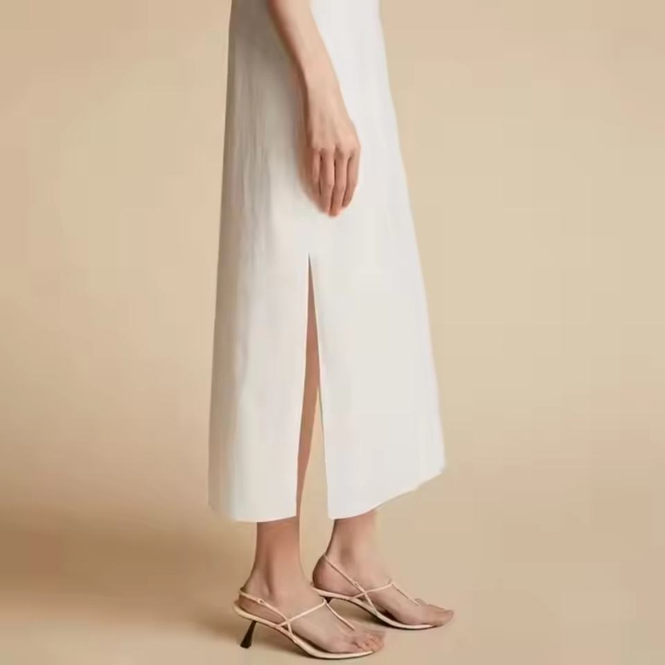 เดรสลำลองสไตล์หรูหราสำหรับผู้หญิง ทรงหลวม ยาวปานกลาง ผ้าลินิน 100% เป็นมิตรกับสิ่งแวดล้อม ลายเรียบ สำหรับงานปาร์ตี้ฤดูใบไม้ผลิและวัยรุ่น