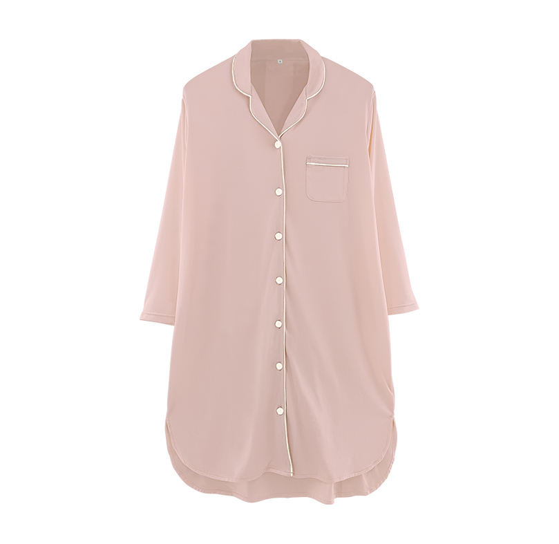 ชุดนอนผู้หญิงมีกระดุมผ้าโพลีเอสเตอร์ทรงหลวมหรูหราสวมใส่สบายชุดนอนแขนยาวขนาดใหญ่ใส่สบาย
