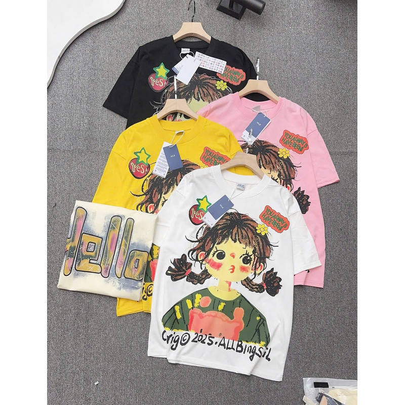 เสื้อยืดแฟชั่นลำลองผ้าฝ้ายสำหรับผู้หญิงดีไซน์การ์ตูนน่ารักระบายอากาศได้ดีสวมใส่สบายมีไซส์ XS-5XL สำหรับฤดูร้อน