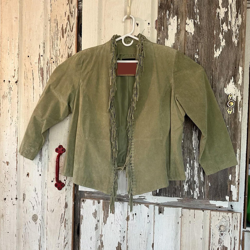 เสื้อแจ็คเก็ตหนังกลับผู้หญิง ประดับพู่