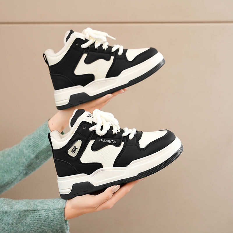 รองเท้าผ้าใบแฟชั่นลำลองลายสก็อตแบบหุ้มข้อสูงสำหรับผู้หญิง ทำจากผ้าฝ้าย พร้อมพื้นรองรับแรงกระแทกและพื้นยางทันสมัย