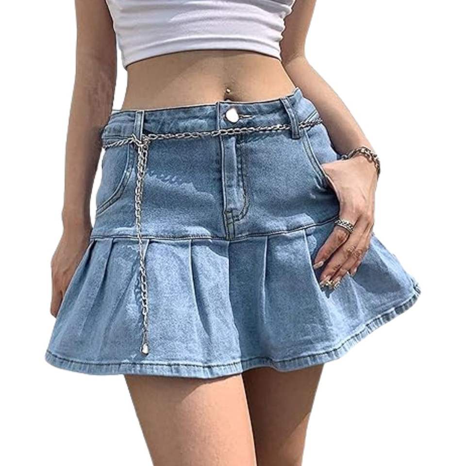 Casual Fashion Sky Blue Women Mini Jeans Skirt High Waisted Pleated Mini Jean Skirt Customizes Logo Denim Skirts