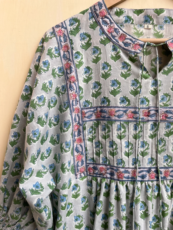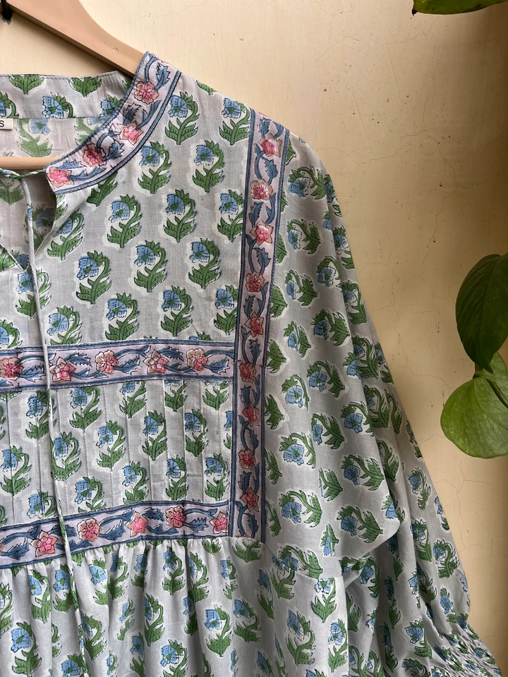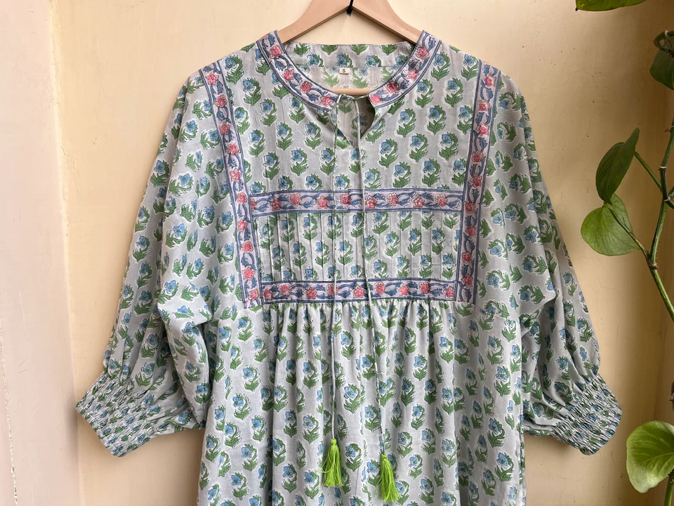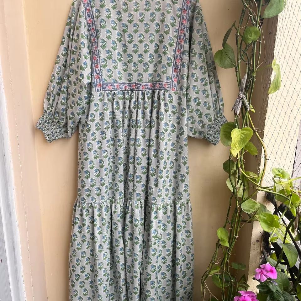 ชุดแมกซี่เดรสลำลองลายดอกไม้สำหรับผู้หญิงเสื้อคลุมผ้าฝ้ายอินเดียปักลายและพู่สำหรับฤดูร้อน