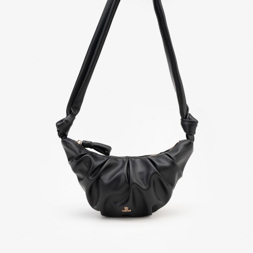 กระเป๋าสะพายไหล่ทรงครึ่งวงกลมสไตล์วินเทจลายเรขาคณิตแฟชั่นเกาหลีแบบลำลองสำหรับผู้หญิง มีซิปสองช่อง ทำจากหนัง PU