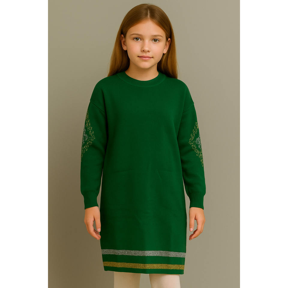 เดรสไหมพรมสีน้ำเงินสำหรับสาวๆ สไตล์ลำลอง แขนยาว ทรงหลวม ดีไซน์ลายเก๋