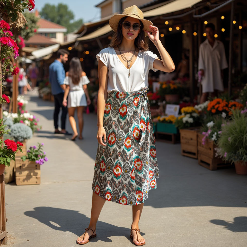 กระโปรงชายหาดยาวถึงเข่าพิมพ์ลายเรขาคณิตสีเทาลำลองของผู้หญิงศิลปะและงานฝีมือที่มีสไตล์เป็นที่ต้องการสูง