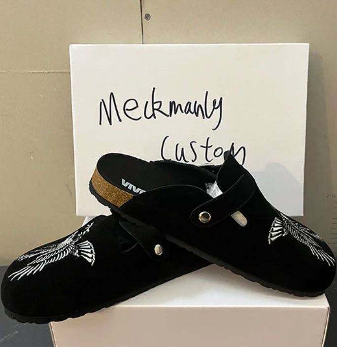 รองเท้าแตะลำลองแบบสวมครึ่งเท้าสำหรับผู้หญิง คู่รัก รองเท้าแตะแบบสวมสบาย ไซส์ใหญ่พิเศษ รองเท้าแตะพื้นไม้ก๊อก