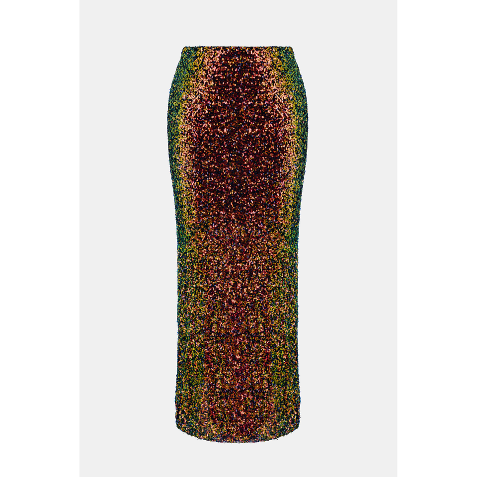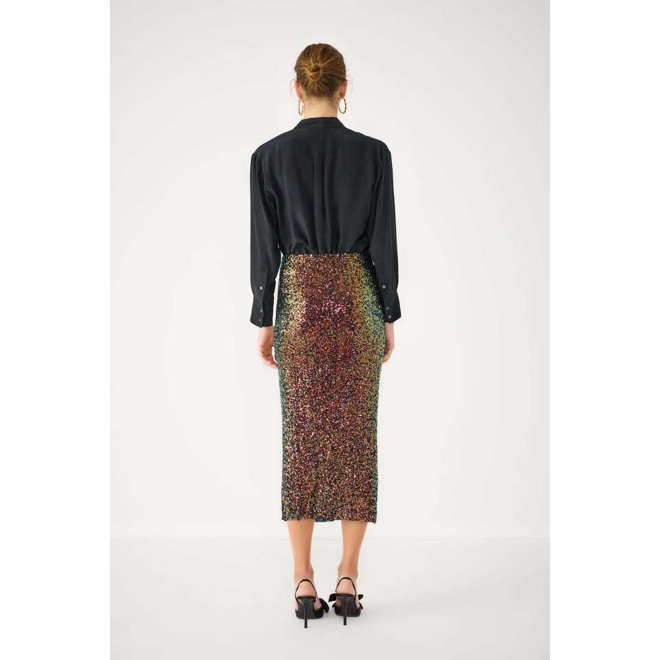 กระโปรงมิดิเอวสูงประดับเลื่อม