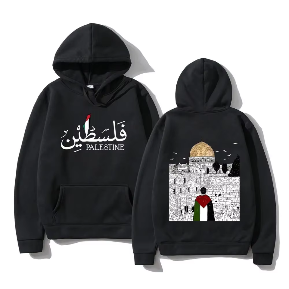 เสื้อฮู้ดลำลองแบบสวมหัวลายปาเลสไตน์สำหรับผู้ชายและผู้หญิง มีหลายสี เสื้อฮู้ดลายกราฟิกปาเลสไตน์ราคาถูกสำหรับฤดูหนาว