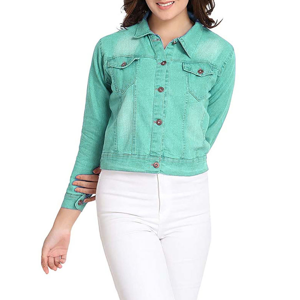 เสื้อแจ็กเก็ตยีนส์สำหรับผู้หญิงเสื้อแจ็กเก็ตยีนส์มีกระเป๋าผ้าคอตตอนสำหรับฤดูใบไม้ร่วง