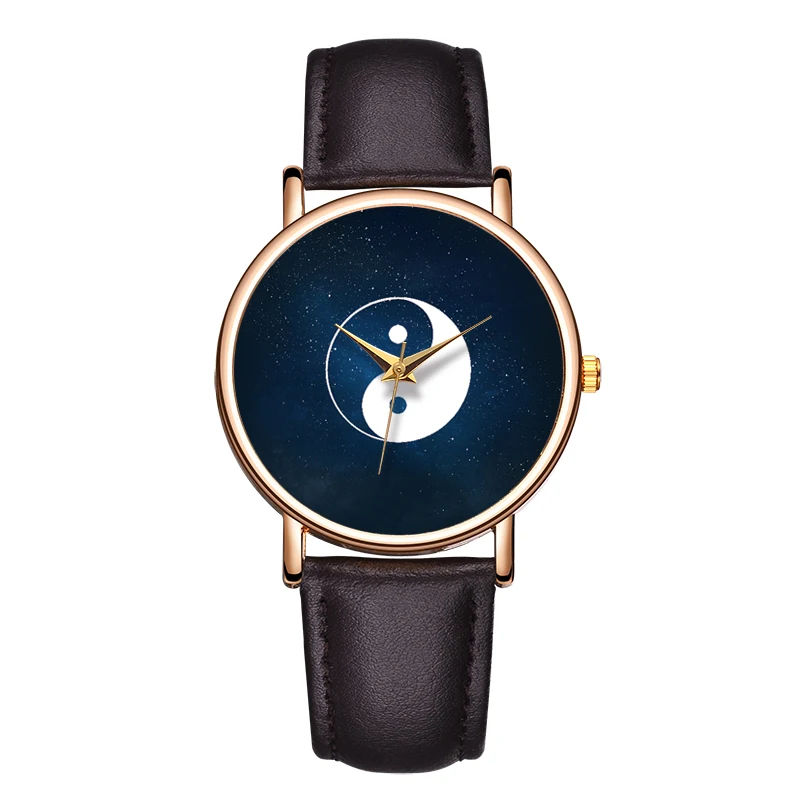 นาฬิกาควอทซ์ลำลองของผู้หญิง Tai Chi Star Sky นาฬิกาข้อมือกันน้ำดูหรูหราหนังแท้