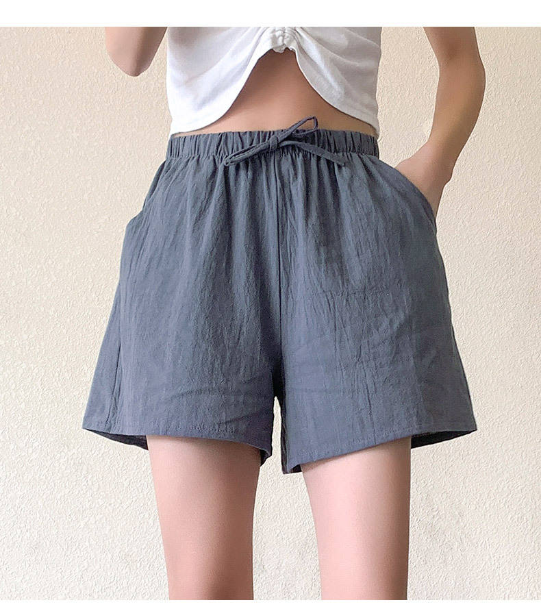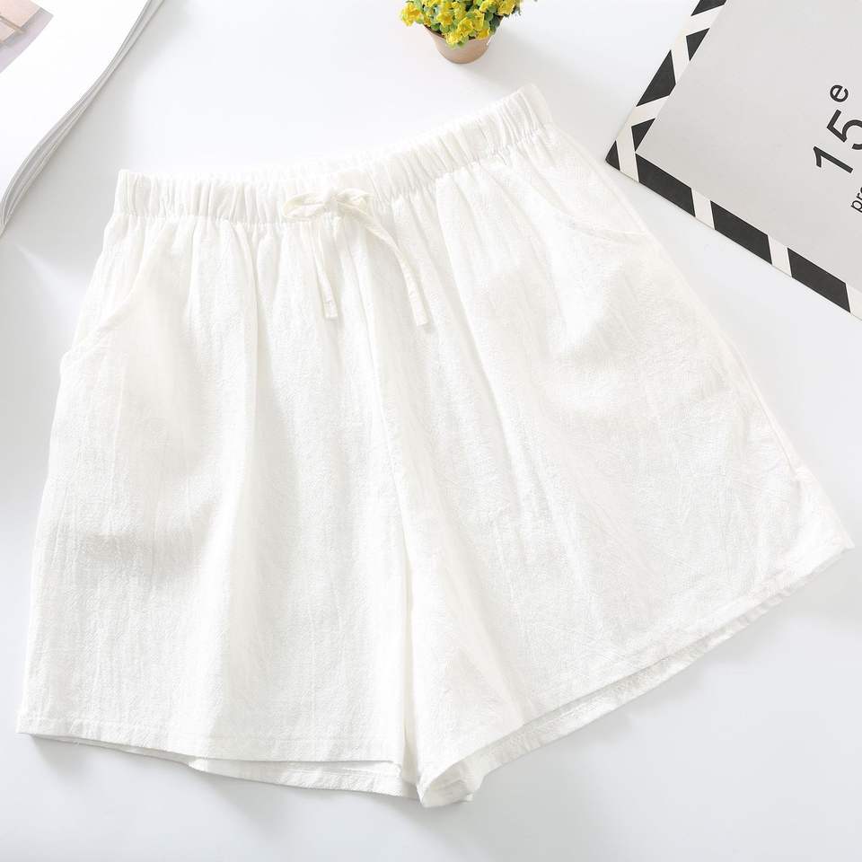กางเกงขาสั้นผ้าลินินลำลองสำหรับผู้หญิงกางเกงออกกำลังกายขาสั้นผ้าฝ้ายเอวสูงสีดำสำหรับผู้หญิงกางเกงขาสั้นสำหรับผู้หญิงกีฬา