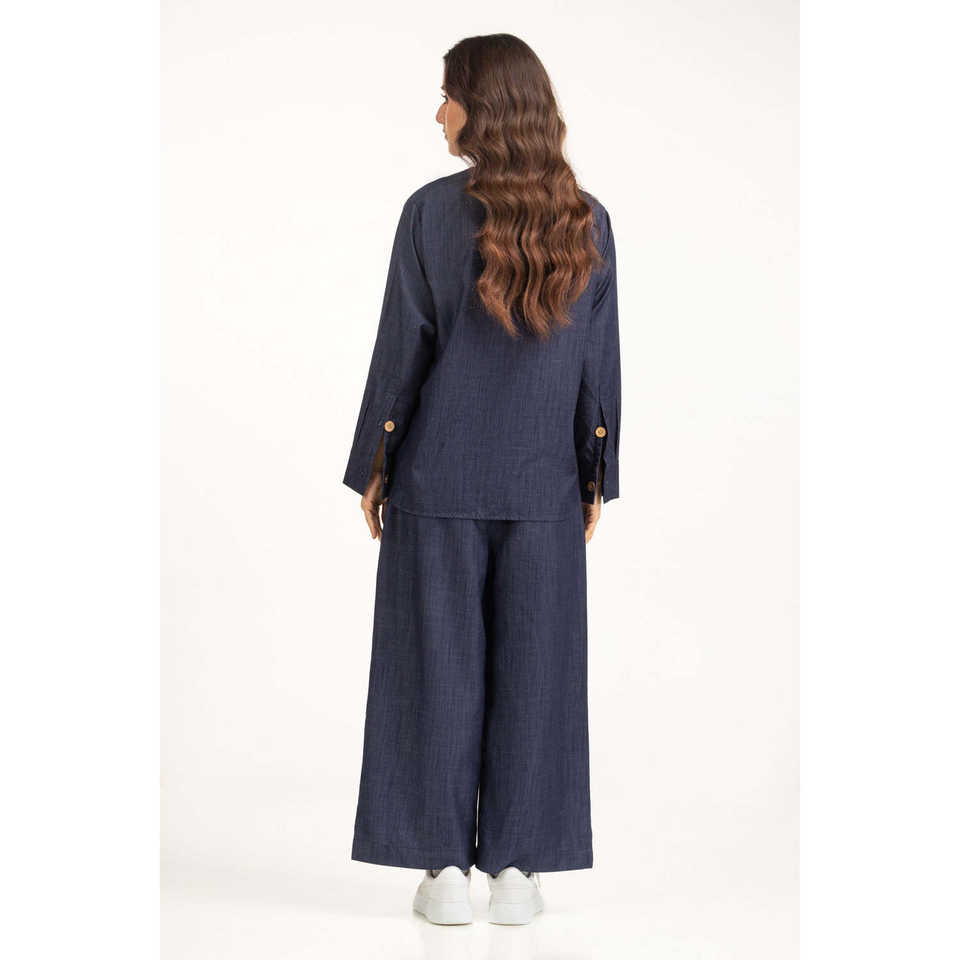 เสื้อลินินลำลอง WM-COD-WS25-004T ระบายอากาศได้ดี ดีไซน์เรียบง่าย แบบไม่มีปก ทรงปกติ