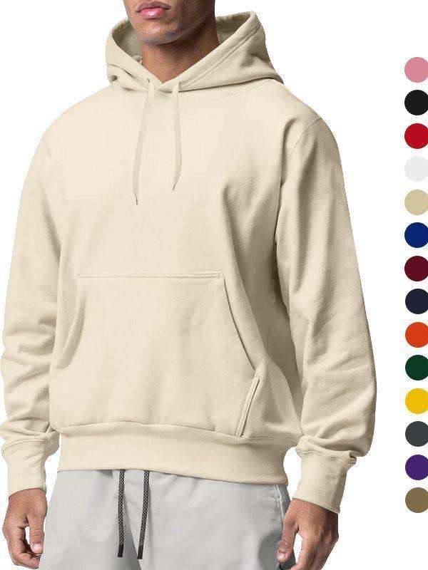 เสื้อสเวตเชิ้ตแขนยาวลำลอง โพลีเอสเตอร์ สีพื้น ปักโลโก้ได้ สตรีทแวร์ เสื้อฮู้ดดี้ผู้ชายแบบเรียบ ขายส่ง