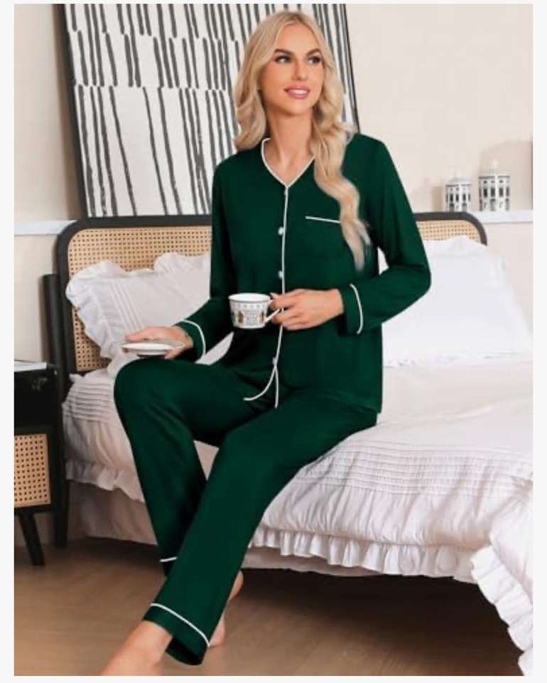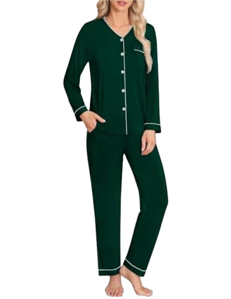 ชุดนอนโมดอลแขนยาวลำลองสำหรับผู้หญิงชุดใส่อยู่บ้านคอวีติดกระดุม S-XXL ขนาดชุดนอนผ้าทอเพื่อนเจ้าสาว