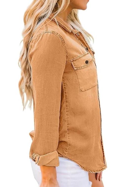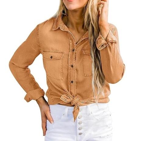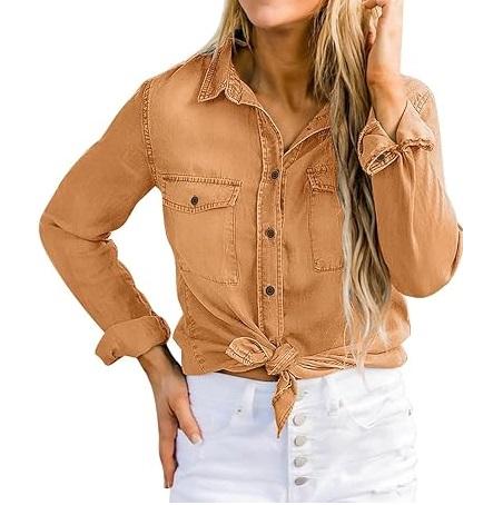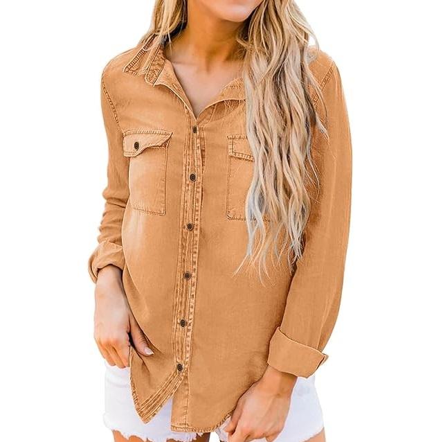 เสื้อเชิ้ตเดนิมลำลองสำหรับผู้หญิง สไตล์เก๋ไก๋ ลุคซันเฟด ยีนส์ฟอกสี มีจำหน่ายในแบบคลาสสิก เสื้อเชิ้ตเดนิมระบายอากาศได้ดีสำหรับผู้หญิง