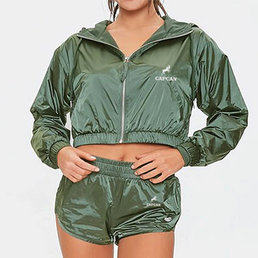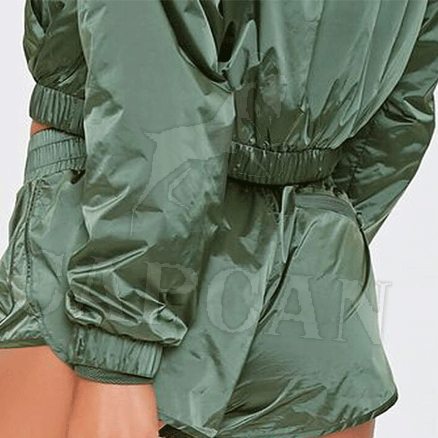 ชุดวอร์มกันลมของผู้หญิงเสื้อครอปแขนยาวแบบลำลองทรงหลวมสไตล์กำหนดเองได้