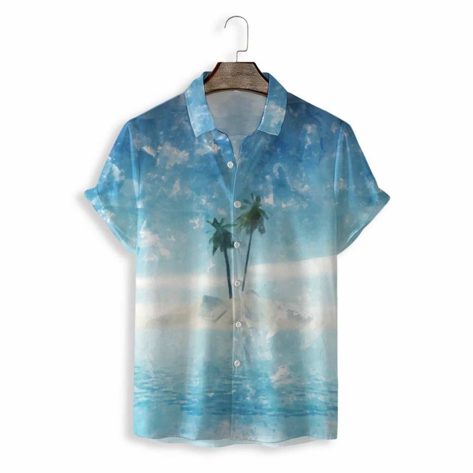 เสื้อเชิ้ตลายเกาะทะเลรีสอร์ทลำลองทรงหลวมแบบมีกระดุมแห้งเร็วเสื้อชายหาดสำหรับผู้ชายพิมพ์ดิจิตอลสำหรับฤดูร้อน