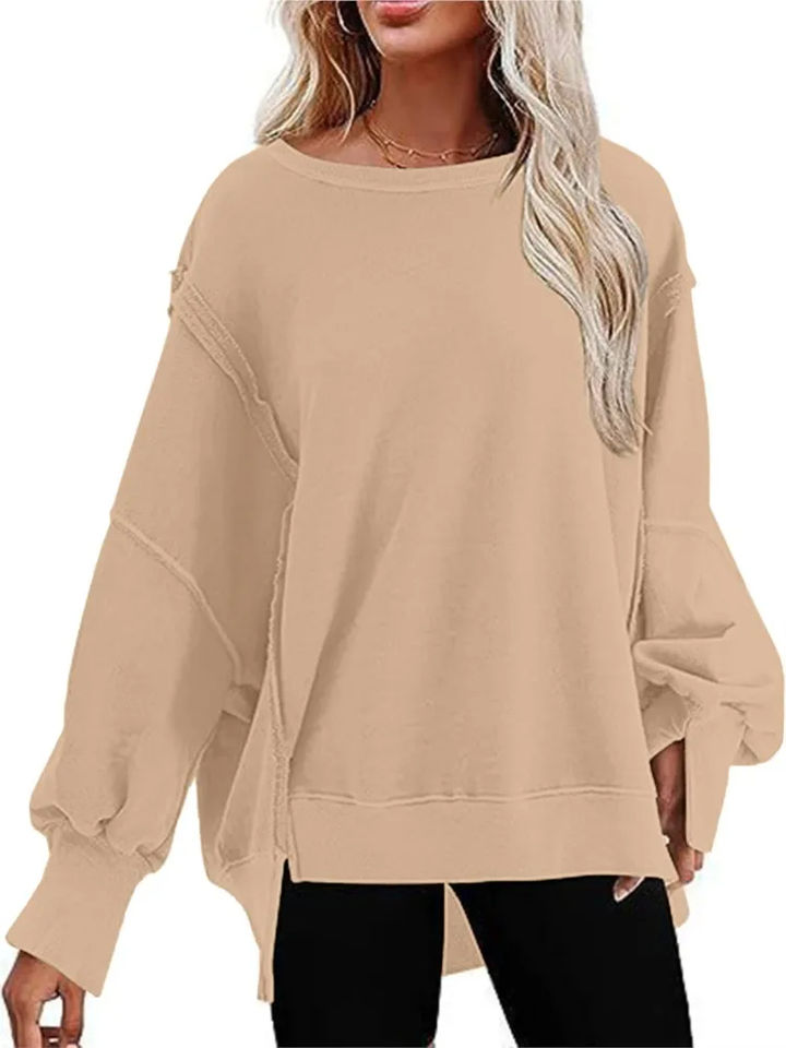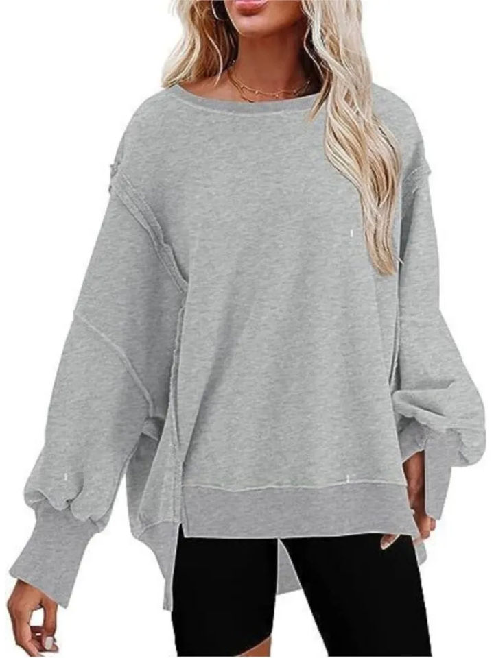เสื้อสเวตเตอร์ลำลองทรงหลวมสำหรับผู้หญิง, เสื้อโค้ทมีฮู้ดแฟชั่นเสื้อคอกลมแขนยาวสีพื้นใหม่ฤดูใบไม้ร่วง