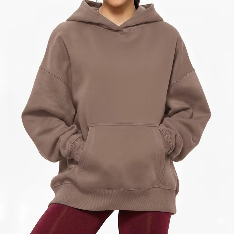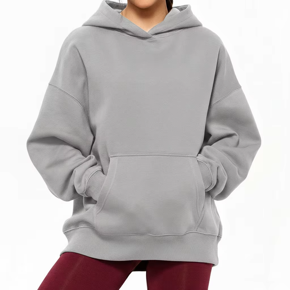 เสื้อฮู้ดโอเวอร์ไซส์ทรงหลวมสบายๆ สำหรับผู้หญิง ผ้าฟลีซสำหรับฤดูหนาว เป็นมิตรกับสิ่งแวดล้อม สไตล์สตรีทแฟชั่น