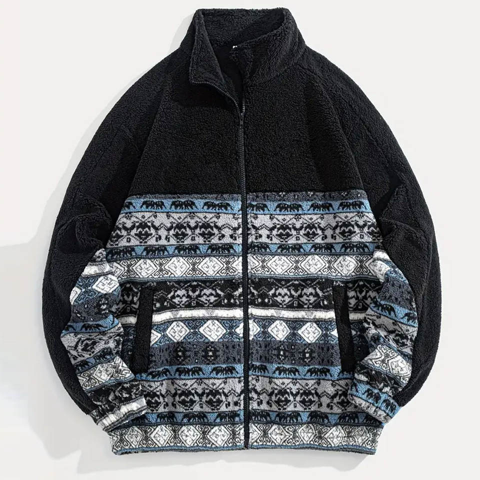 เสื้อแจ็คเก็ตเชอร์ปาผู้ชายสไตล์ลำลอง ทรงหลวม ผ้าใส่สบาย เหมาะสำหรับใส่ในชีวิตประจำวัน ท่องเที่ยว กิจกรรมกลางแจ้ง และการสวมใส่แบบเลเยอร์