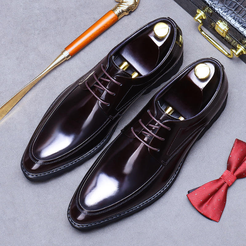 รองเท้าดาร์บี้ทางการสำหรับผู้ชายแนวธุรกิจลำลองรองเท้าพื้นหนาเย็บปะติดปะต่อกันลื่นระบายอากาศน้ำหนักเบา